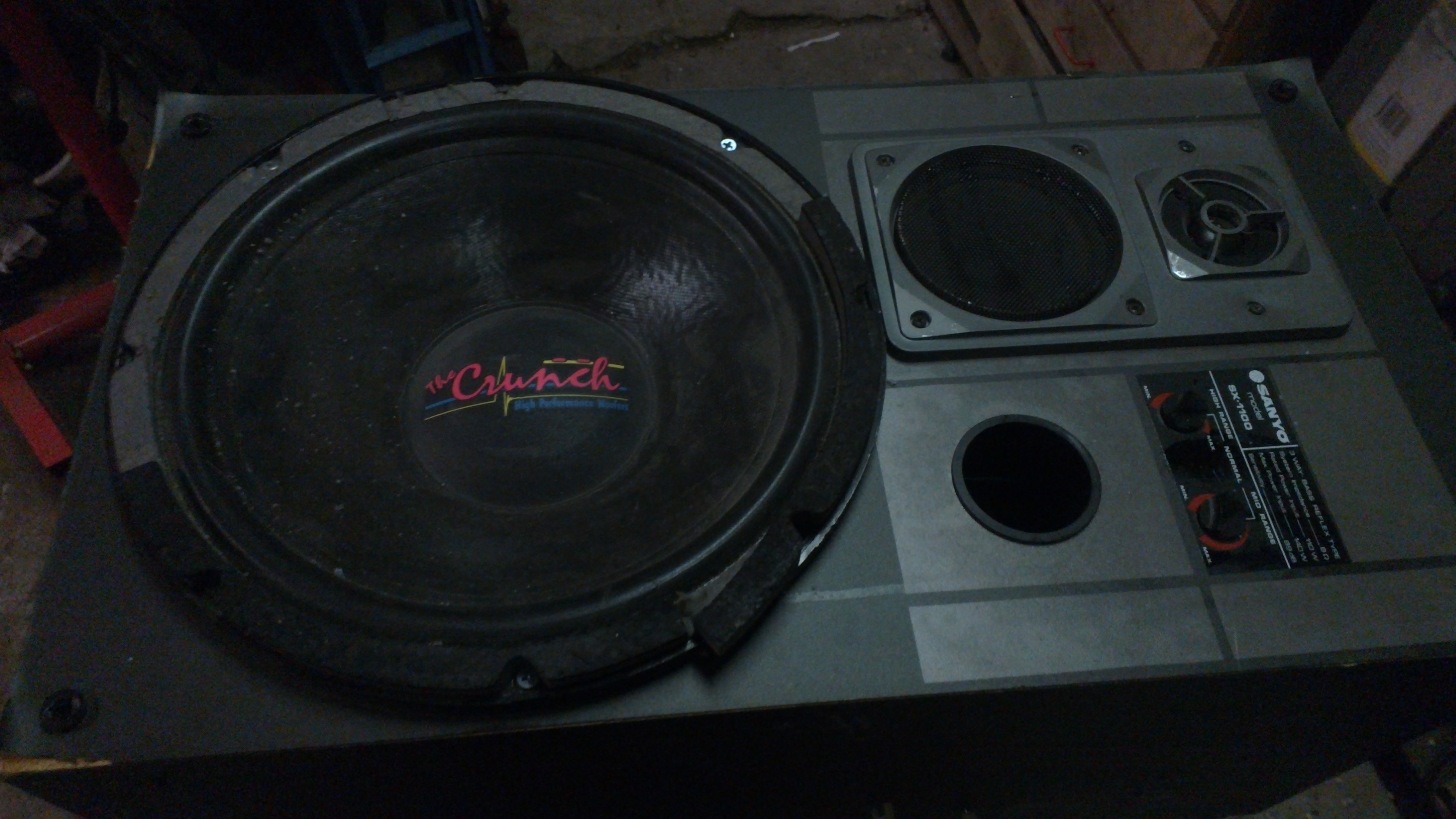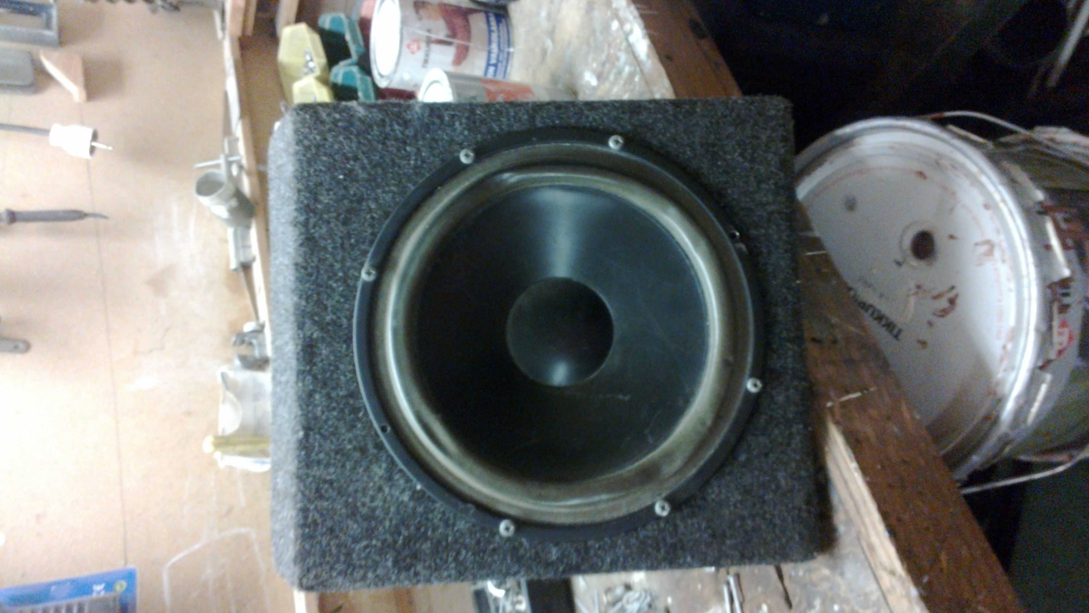 vet inte hur man skickar bilder med PM så här kommer de jag hittat: 10" GAS okänd spec då jag inte orkade skruva upp den i orginal o fin låda, spelar bra 10" DLS i hembyggd fin låda 200w 4ohm, spelar bra 10" SPL som jag TROR är 200w men orkade inte skruva upp den heller, hembyggd rejäl låda med sladdrigt tyg, spelar bra 12" Crucher USA, hittade bara 8ohm som spec på den, spelar bra i en gammal hemmahögtalarlåda!