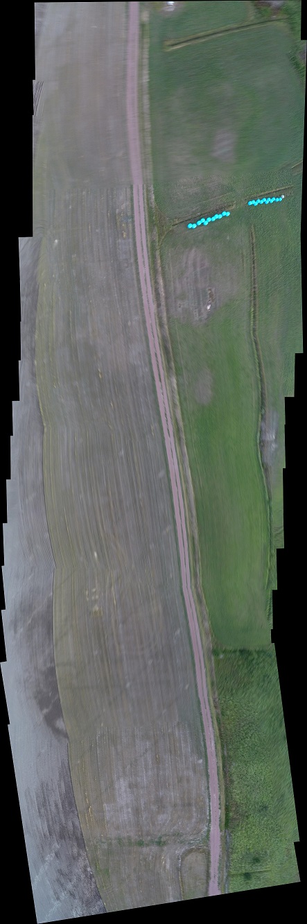 Då blir varje vända 450 / 8, dvs 56 m per stråk. Och en bild är 4000 bildpunkter bred. Men man behöver överlappning. För mig räcker max 50%. Dvs varje flygning måste täcka mer än 56 m. Dvs varje stråks bredd måste vara det dubbla, dvs 108 m. Vi säger 100 m. Och det går, det blir exakt 8 stråk om man flyger 100 m brett per stråk.