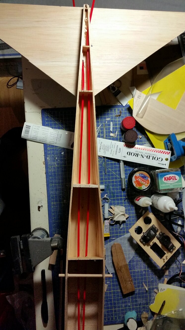 Kvar är att limma fast undersidan av kroppen, limma lister som håller kvar landningsställ, bygga servo brygga och fästen för servon i vingen.