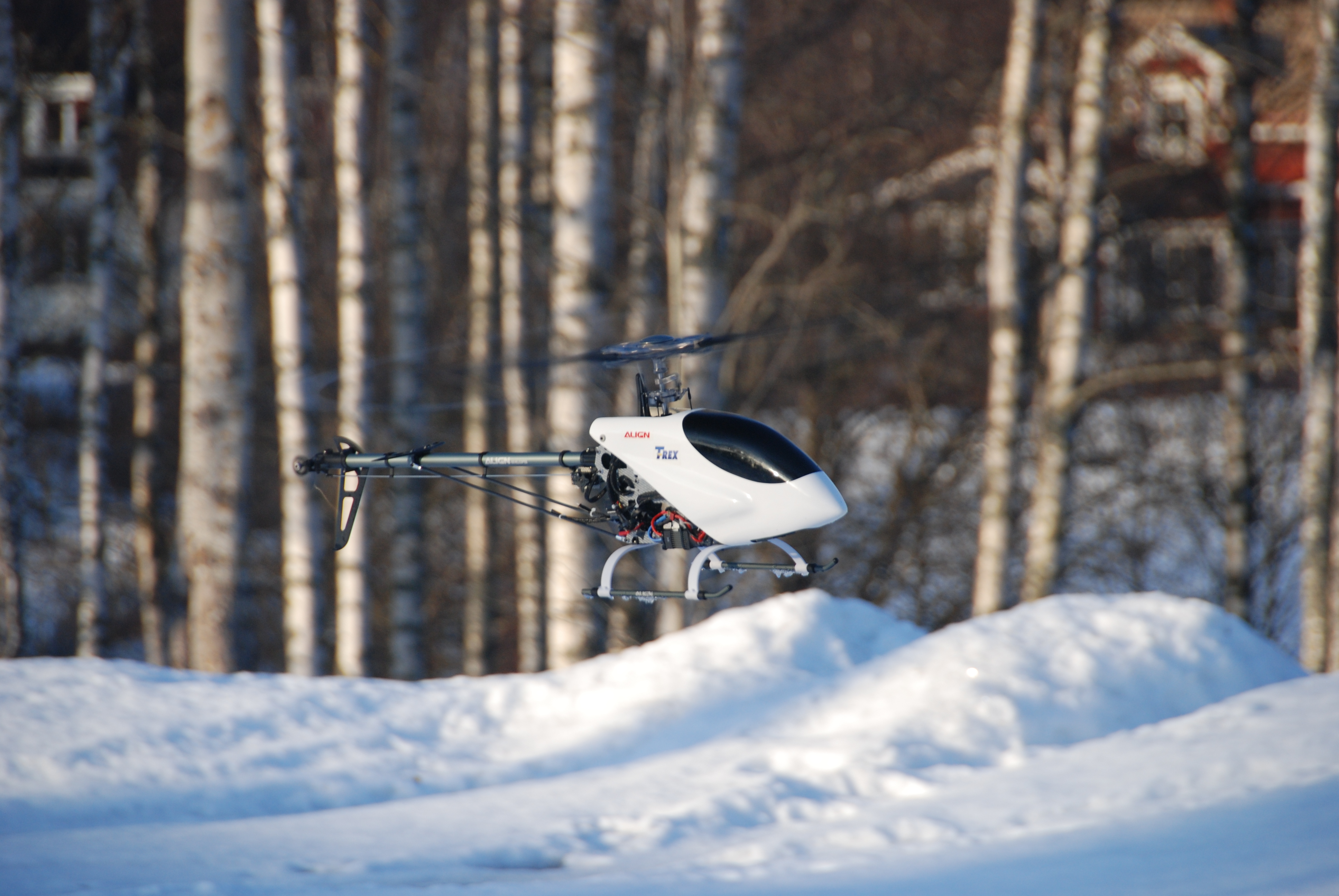 I veckan, när det blåste 10m/s körde jag min nydrevade Trex på åkern, utan skalakroppen. Det gick som en dröm, upp och ned for den i vinden vilket var väntat men den var stabil och jag kunde ha hög känslighet på FBLgyrot utan att den blev några wobblingar.